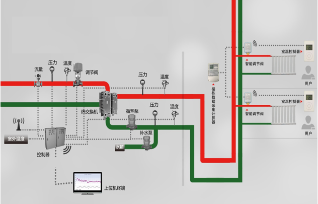 系統(tǒng)概述: 客戶端均溫調(diào)控系統(tǒng)將戶端調(diào)節(jié)閥、溫控面板的數(shù)據(jù)通過系統(tǒng)上傳到采購單位控制機(jī)房,并與采購單位已有收費系統(tǒng)、客服系統(tǒng)、集抄系統(tǒng)、SCADA系統(tǒng)、信息化綜合管理平臺實現(xiàn)對接,最終實現(xiàn)項目單元及末端用戶的二網(wǎng)平衡均溫效果,達(dá)到既定熱負(fù)荷目標(biāo)。